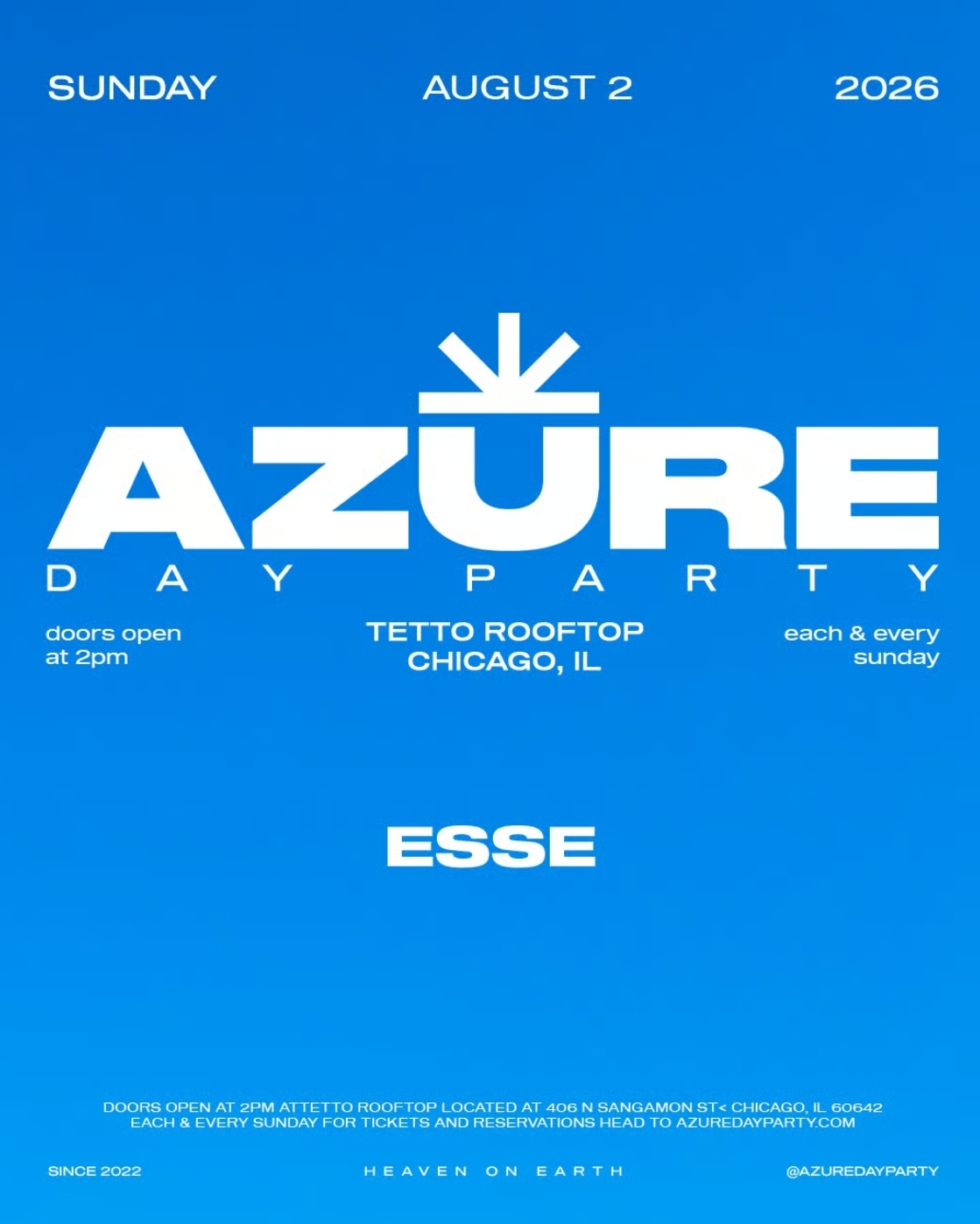 ☀️ 08/02: SUNDAY DAYTIME: TETTO ROOFTOP: "Azure Day Party" ft. Esse